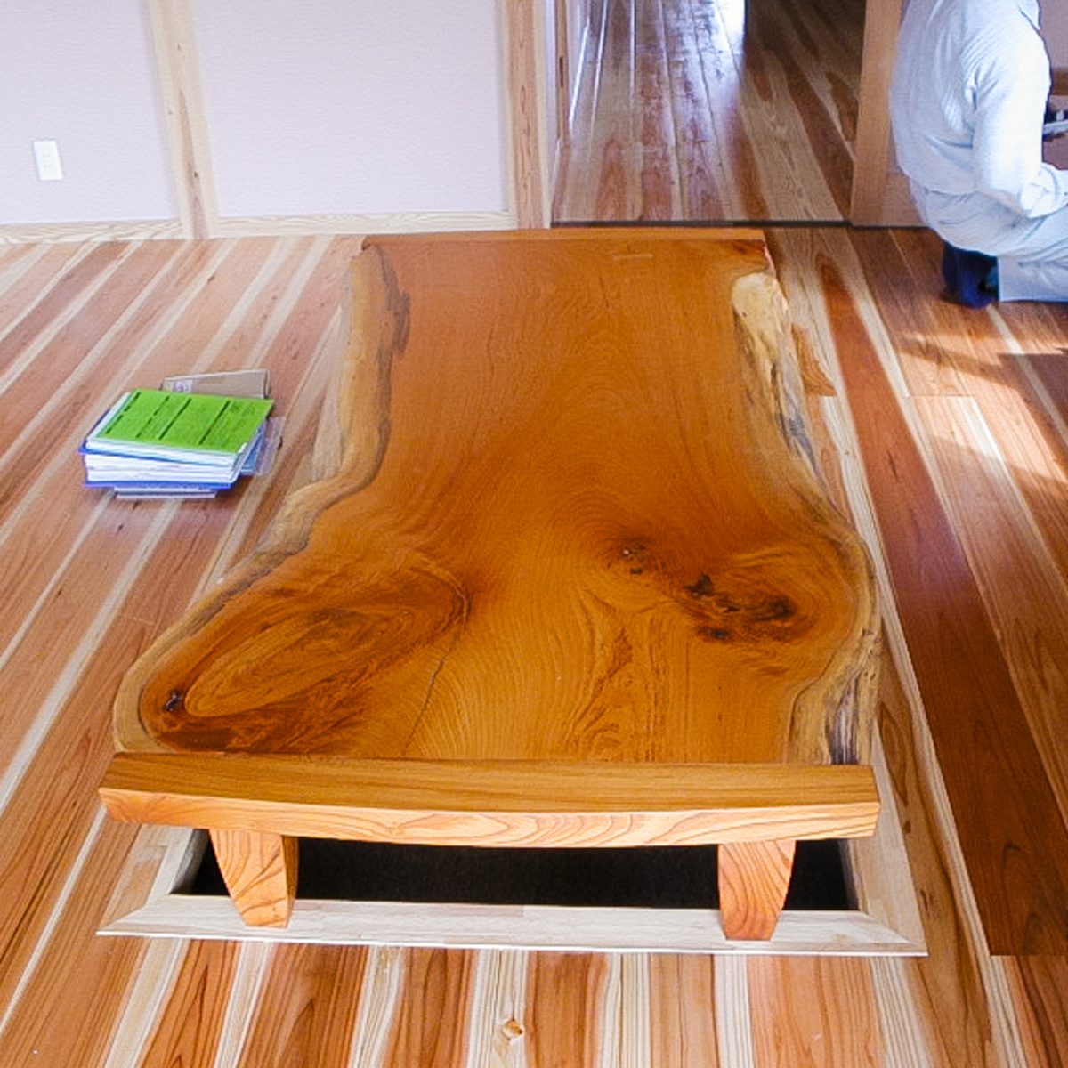 ↑タタミの小上がりの下に収納つくりました
