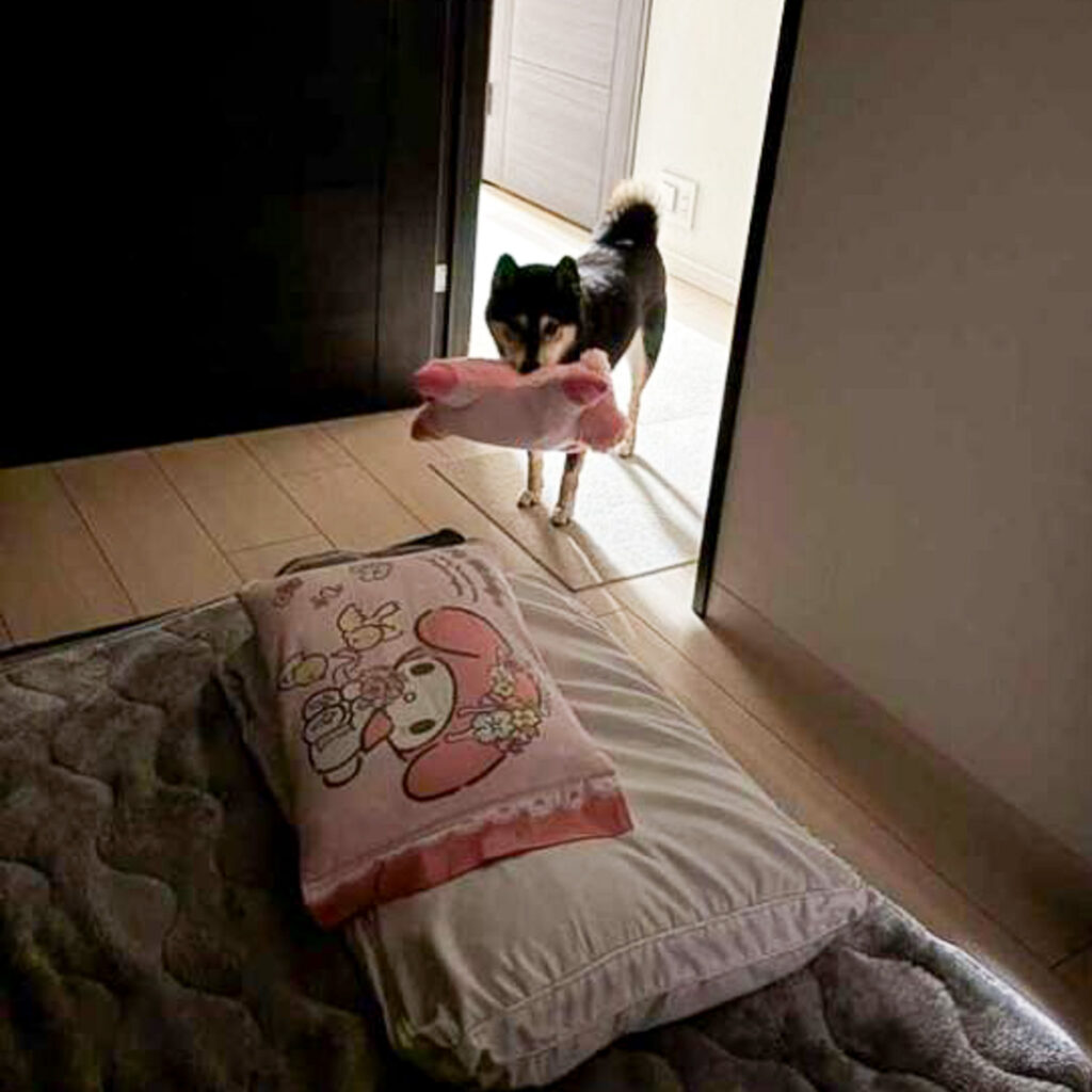 自分の枕をもって