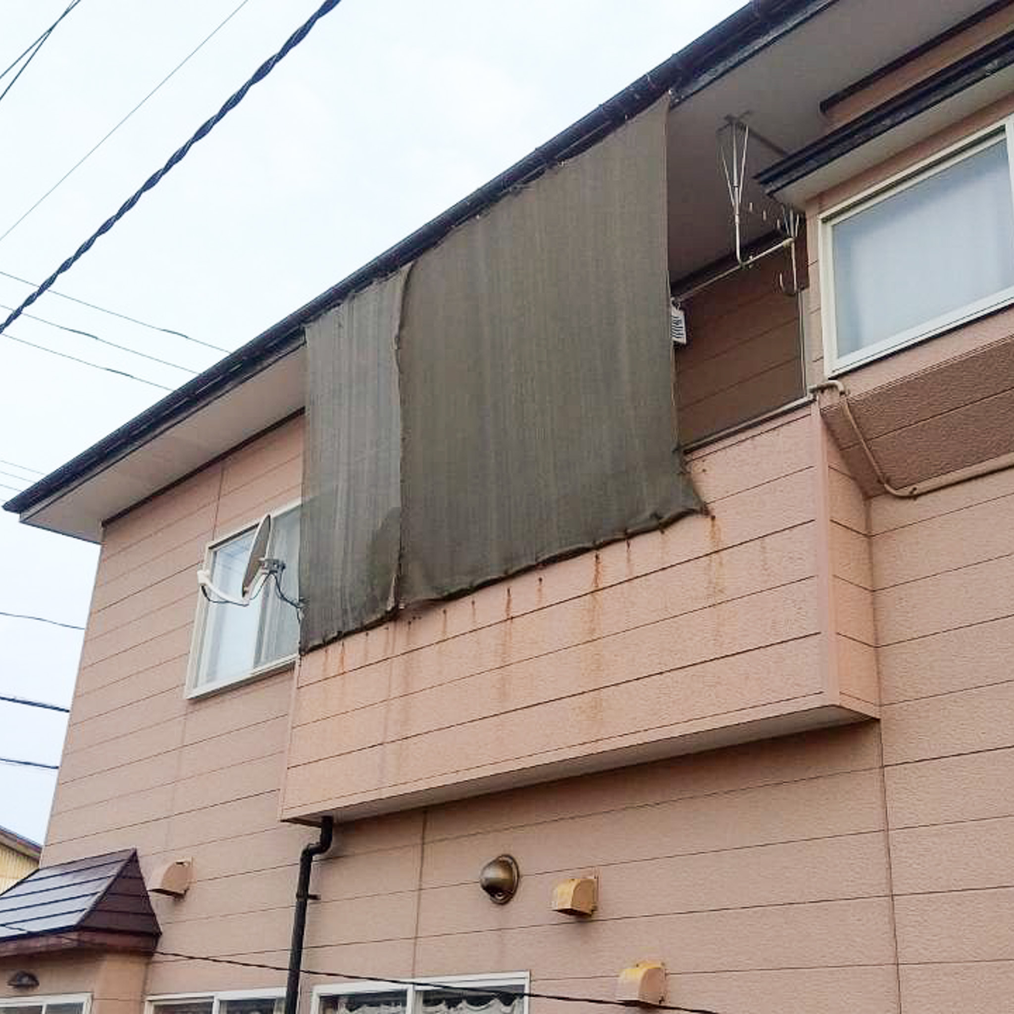 ↑2階のベランダでシェードで影をつくるお宅