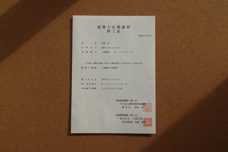 建築士の定期講習証、やっと届きました